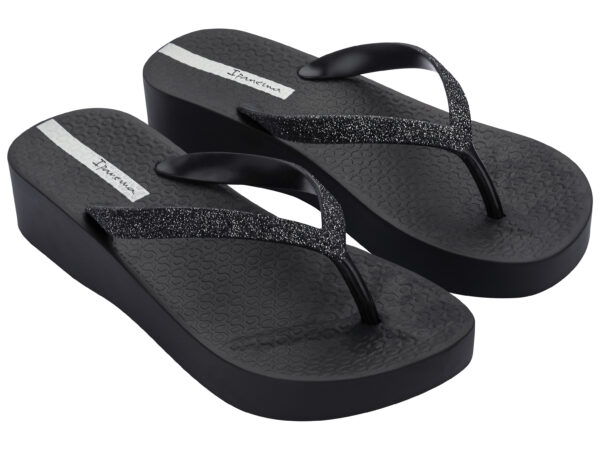 Heb je een feestje in de zomer? De Ipanema Anatomic Mesh Chic met plateauzool geeft een glamourous look aan iedere outfit. De teenslipper met platformzool heeft glitters op de bandjes en een soepel voorgevormd voetbed voor perfect loopcomfort. Ipanema slippers zijn gemaakt van Flexpand: soepel en duurzaam, vrij van giftige stoffen en Vegan.