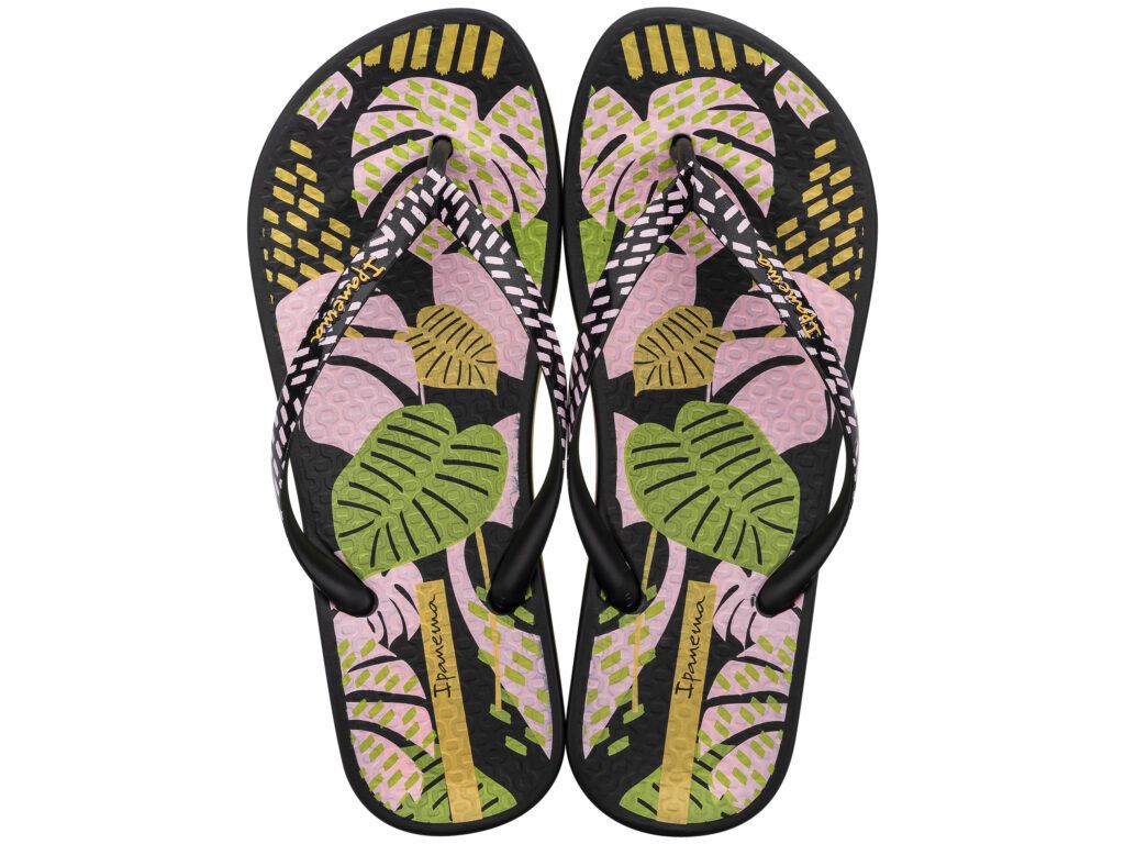 De perfecte combinatie van pure elegantie en prettig loopcomfort: de Ipanema Anatomic Nature. Geïnspireerd door de elementen uit de natuur, met bladeren en geometrische vormen op het voorgevormde voetbed. Ook de bandjes zijn versierd met frisse kleuraccenten. Ipanema slippers zijn gemaakt van Flexpand: een vegan en recyclebaar materiaal met soepele en dempende eigenschappen.