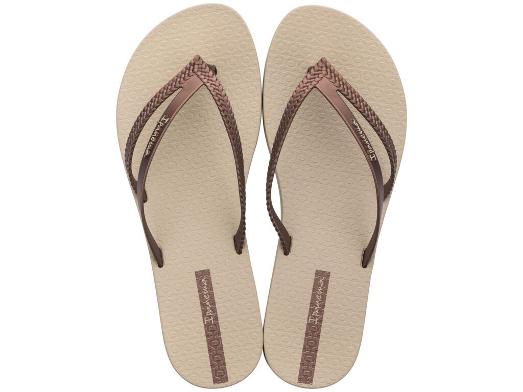 De Ipanema Bossa slipper voor dames brengt een originele twist op de originele flip-flop. Bossa's gespleten bandje inclusief vlecht-design geeft een vernieuwende touch aan je outfit. Deze teenslipper heeft een slank voetbed van soepel en zacht Flexpand, een materiaal dat bij de productie 100% gerecycled wordt en bovendien vegan is.