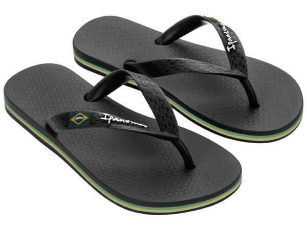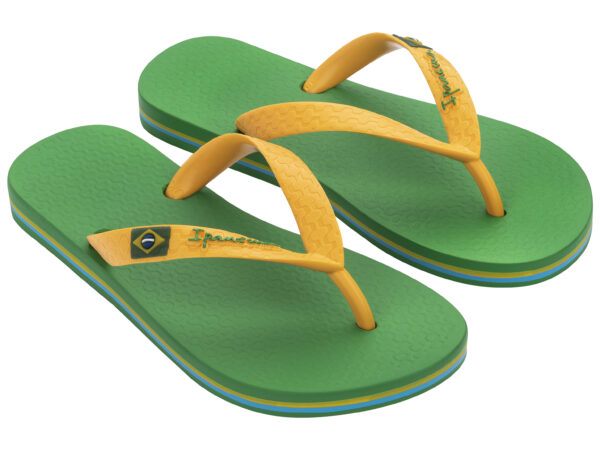 De Ipanema Classic Brasil voor kids is een must-have teenslipper van de vroege lente tot de zwoele nazomer. Dit model heeft het design van de klassieke Braziliaanse teenslipper, met het vlaggetje op de band. De stevige bandjes bieden goed comfort en het voetbed is soepel en zacht. Urenlang speelplezier op een verantwoorde manier: de slippers zijn gemaakt van gerecycled Flexpand. Een uniek materiaal dat tevens Vegan is.
