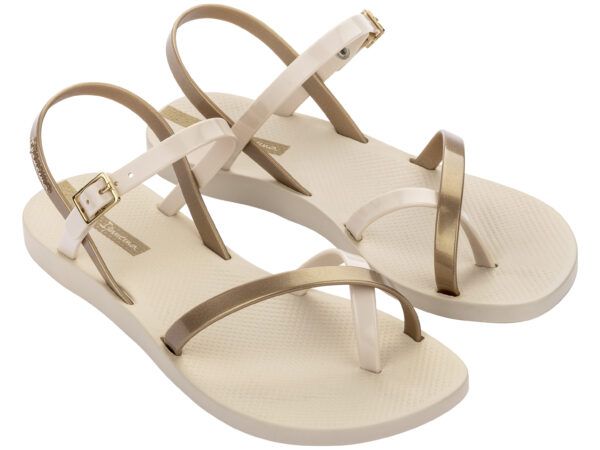De Ipanema Fashion Sandal geeft een casual look aan iedere outfit. De Ipanema Fashion Sandal heeft twee bandjes met een metallic afwerking passend bij de kleur van de voorgevormde zool. Met het gespje kan de sandaal versteld worden naar de gewenste enkelomvang. Het Flexpand, waar de sandaal van gemaakt is, zorgt voor een comfortabele fit.
